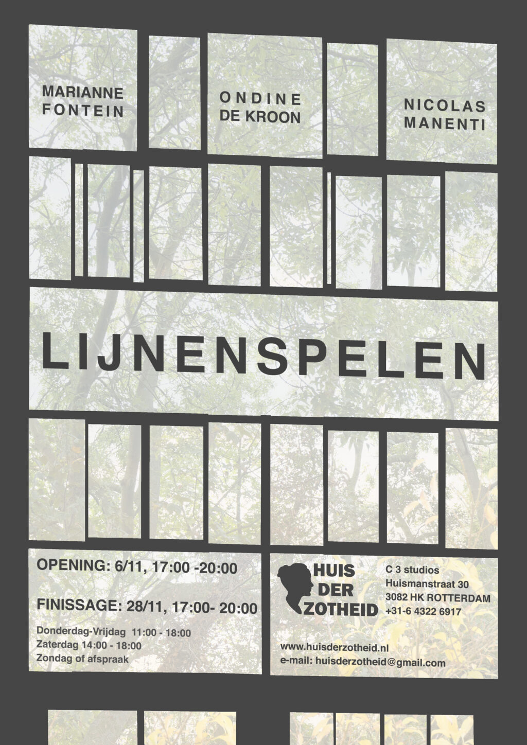 Graag nodig ik je uit voor de tentoonstelling “Lijnenspelen” in Huis der Zotheid kunstpodium. We presenteert werk van Marianne Fontein, Ondine de Kroon en Nicolas Manenti. Leuk als je er bij kan zijn! Openingstijden & EvenementenOpening: 6 november van 17.00 – 20.00 uurFinissage: 28 november van 17.00 – 20:00 uur. Reguliere openingstijden:Donderdag en vrijdag van…